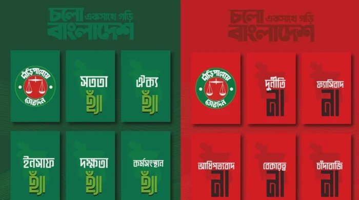 আসন্ন ত্রয়োদশ জাতীয় সংসদ নির্বাচন সামনে রেখে ভিন্নধর্মী ও প্রতীকী কাঠামোয় নির্বাচনি ইশতেহার ঘোষণা করেছে বাংলাদেশ জামায়াতে ইসলামী। প্রচলিত দীর্ঘ প্রতিশ্রুতির তালিকার বাইরে গিয়ে দলটি এবার তাদের রাজনৈতিক অবস্থানকে সংক্ষিপ্ত, স্পষ্ট ও দ্ব্যর্থহীনভাবে উপস্থাপন করেছে ‘৫টিতে হ্যাঁ’ এবং ‘৫টিতে না’—এই দুই ধারণার মাধ্যমে। রাজনীতিতে কোন বিষয়গুলোতে তারা আপসহীনভাবে সমর্থন জানায় এবং কোন বিষয়গুলো তারা সম্পূর্ণভাবে প্রত্যাখ্যান করে, তা এক নজরেই বোঝানোর চেষ্টা করা হয়েছে এই কাঠামোয়।