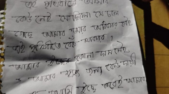 প্রকাশ: ২২ আগস্ট ‘২০২৫ । নিজস্ব সংবাদদাতা । একটি বাংলাদেশ অনলাইন ঝিনাইদহের কালীগঞ্জে চিরকুট লিখে আত্মহত্যা করেছেন শামীমা নামের এক নার্সিং শিক্ষার্থী। বুধবার সন্ধ্যায় উপজেলার একটি তিনতলা ভবনের নিচতলায় ফ্যানের