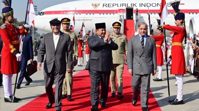 প্রকাশ: ০৮ ডিসেম্বর ২০২৫ | নিজস্ব সংবাদদাতা | একটি বাংলাদেশ অনলাইন  ইন্দোনেশিয়ার প্রেসিডেন্ট প্রাবোয়ো সুবিয়ান্তো সোমবার পাকিস্তানের প্রধানমন্ত্রী শাহবাজ শরিফের আমন্ত্রণে দুই দিনের রাষ্ট্রীয় সফরে ইসলামাবাদে পৌঁছেছেন। তাকে নূর খান
